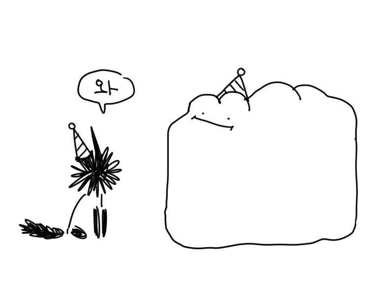내 대신 생일케이크를 먹어준 지인의 그림도 첨부해본다. (무내님 고마워요!)